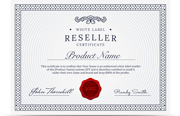 Your official White Label License Certificate that gives you the legal right to rebrand the [Product Name] GPT, sell it as your own, and keep 100% of the profits.